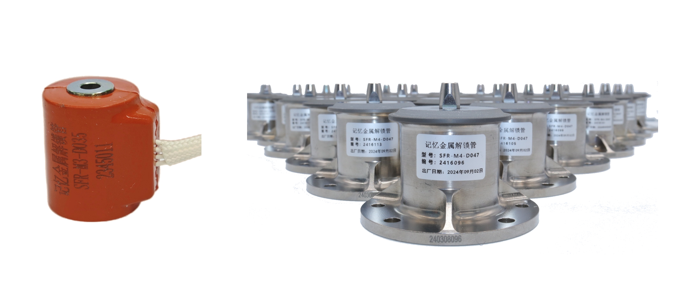 记忆金属解锁管(左:SFR-M3-D035,右:SFR-M4-D047)