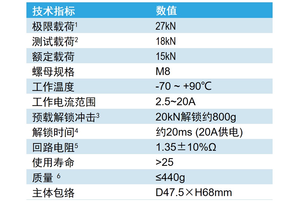 低冲击:解锁冲击相对于火工品降低1~2个数量级;
