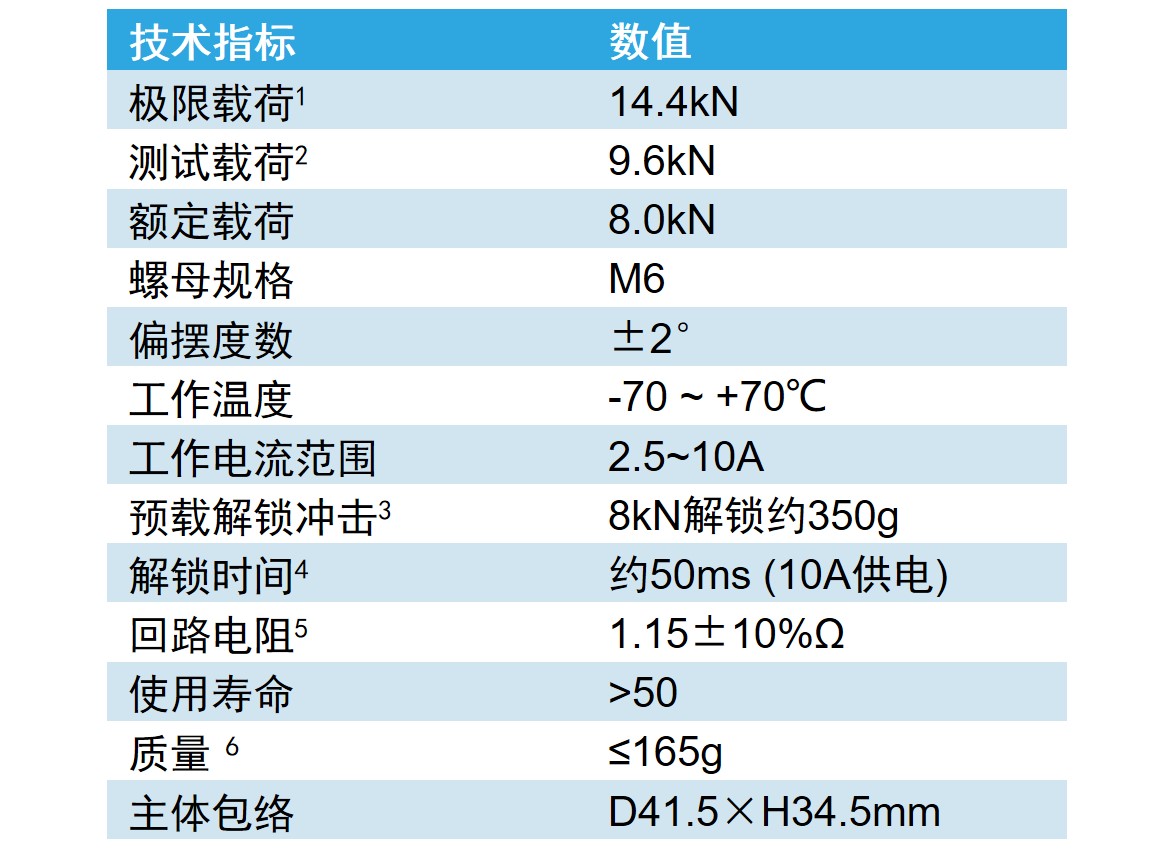 无污染:解锁过程不产生烟尘、破片等多余物,不会对光学及其它精密设备造成污染;